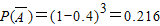 :“購(gòu)買(mǎi)該商品的3位顧客中,至少有1位采用1期付款”的概率