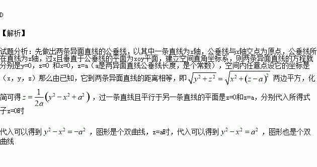 到兩互相垂直的異面直線的距離相等的點(diǎn),在過其中一條直線且平行于另一條直線的平面內(nèi)的軌跡是( )