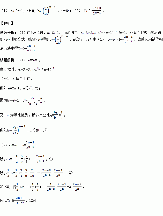 (本小題滿分12分)設(shè)數(shù)列{an}的前n項和為Sn=n2,{bn}為等比數(shù)列,且a1=b1,b2(a2-a1)=b1.