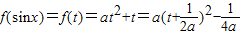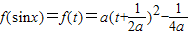 【答案】分析:(1)由題意得:,令t=sinx∈[-1,1]則,根據(jù)二次函數(shù)的性質(zhì)得:當(dāng)t=1即時(shí),f(sinx)有最大值