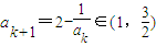 ②假設(shè)n=k時(shí)命題成立,即1<ak<2,