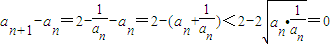 綜上所述:1<an+1<an<2.
