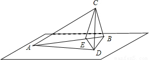 解答:解:過點C做CD垂直平面a,CE垂直AB,連接AD,BD,CE,DE