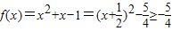 【答案】分析:函數(shù)f(x)=x2+x-1是一個二次型函數(shù),且圖象開口向上,故可用配方法求其最小值.