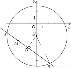 分析:(1)設(shè)直線l與圓N交于A和B兩點,過N作ND垂直于AB,根據(jù)垂徑定理得到D為AB中點,把圓N的方程化為標(biāo)準(zhǔn)方程,找出圓心N的坐標(biāo)和半徑r,由|AB|的長,得到|DB|的長,再由半徑r的值,利用勾股定理求出|ND|的長,即為N到直線l的距離;