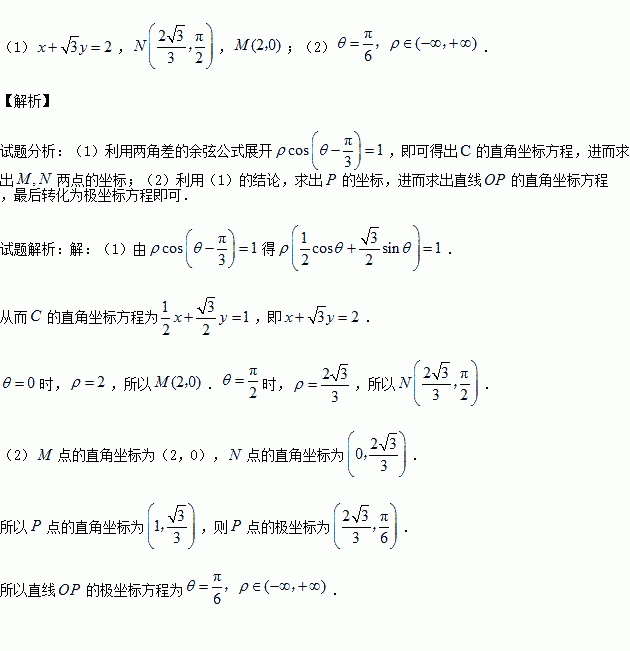 (2)設(shè)MN的中點(diǎn)為P,求直線OP的極坐標(biāo)方程.
