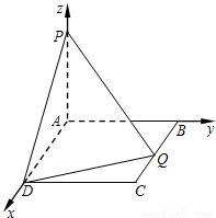 解:法1:(Ⅰ)如圖,連AQ,由于PA⊥平面ABCD,則由PQ⊥QD,必有AQ⊥DQ.(2分)