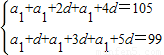 已知{an}為等差數(shù)列,a1+a3+a5=105,a2+a4+a6=99,則a20=