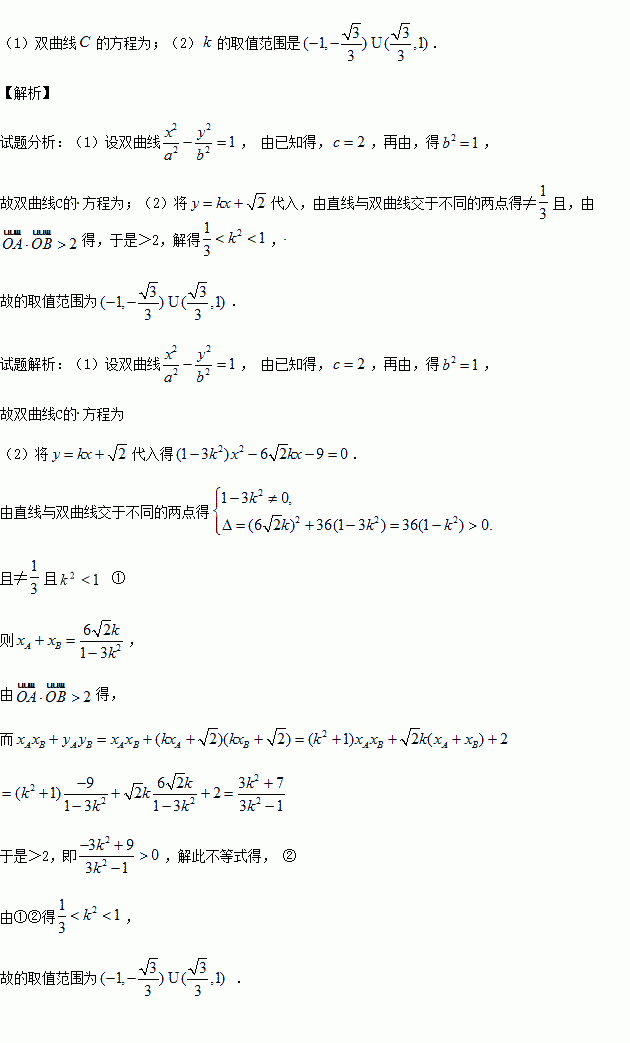 (1)求雙曲線