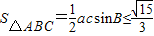 (Ⅱ)利用(Ⅰ)中cosB的值,可求得sinB的值,進(jìn)而通過(guò).利用基本不等式求得ac的范圍,最后利用三角形面積公式,求得三角形面積最大值.