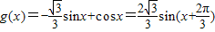 【答案】分析:根據(jù)已知中函數(shù)f(x)=sinx+acosx的圖象的一條對稱軸是,我們求出a的值后,即可得到函數(shù)g(x)的解析式,利用輔助角公式,將函數(shù)g(x)的解析式化為正弦型函數(shù)的形式,由正弦函數(shù)的形式,即可得到結(jié)果.