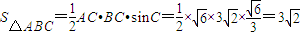 (II)通過正弦定理,利用(I)及AC=,求出BC,求出sinC,然后求△ABC的面積.