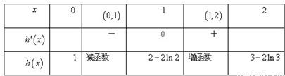 ∵h(0)-h(2)=1-(3-2ln3)=2(ln3-1)>2(lne-1)=0,∴h(0)>h(2).