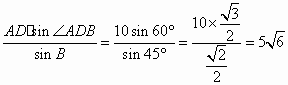 在△ABD中,AD=10,B=45°,ADB=60°,