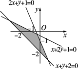 x+y+2=0,x+2y+1=0和2x+y+1=0圍成的三角形區(qū)域.(包括邊界)用不等式組可表示為______.查看答案和解析>>