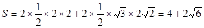 一個幾何體的三視圖如圖所示,則該幾何體的表面積是 ( )