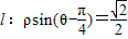 則直線l的直角坐標(biāo)方程為:y-x=1,即x-y+1=0