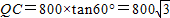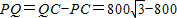 第四屆中國國際航空航天博覽會(huì)于2010年11月在珠海舉行,一次飛行表演中,一架直升飛機(jī)在海拔800m的高度飛行,從空中A處測出前下方海島兩側(cè)海岸P、Q處的俯角分別是45°和30°(如右圖所示).
