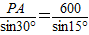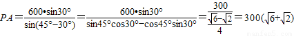 (2)若兩觀測者甲、乙分別在海島兩側(cè)海岸P、Q處同時(shí)測得飛機(jī)的仰角為45°和30°,他們估計(jì)P、Q兩處距離大約為600m,由此試估算出觀測者甲(在P處)到飛機(jī)的直線距離.