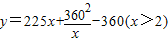 圍建一個(gè)面積為360 m2的矩形場(chǎng)地,要求矩形場(chǎng)地的一面利用舊墻(利用舊墻需維修),其它三面圍墻要新建,在舊墻的對(duì)面的新墻上要留一個(gè)寬度為2 m的進(jìn)出口,,已知舊墻的維修費(fèi)用為45元/m,新墻的造價(jià)為180元/m,設(shè)利用的舊墻的長(zhǎng)度為x,修建總費(fèi)用為y(單位:元).