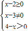 解得2≤x<4且x≠3