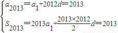 等差數(shù)列{an}的前n項(xiàng)的和為Sn,且a2013=S2013=2013,則a1=( )