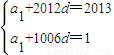 已知等差數(shù)列{an}的前2006項(xiàng)的和S2006=2008,其中所有的偶數(shù)項(xiàng)的和是2,則a1003的值為