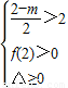 【答案】分析:方程x2+(m-2)x+5-m=0的兩根都大于2,則其相應(yīng)的函數(shù)f(x)=x2+(m-2)x+5-m與x軸的兩個(gè)交點(diǎn)都在直線x=2的右邊,由圖象的特征知應(yīng)有對(duì)稱軸大于2,f(2)>0,且△≥0,解此三式組成的方程組即可求出參數(shù)m的范圍.