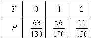 (2)Y的所有可能取值為0,1,2,然后利用組合數(shù)分別求出它們的概率,列出分布列即可;