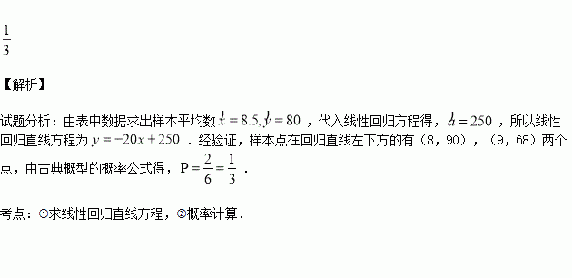 某工廠為了對(duì)新研發(fā)的一種產(chǎn)品進(jìn)行合理定價(jià),將該產(chǎn)品按事先擬定的價(jià)格進(jìn)行試銷,得到如右數(shù)據(jù):