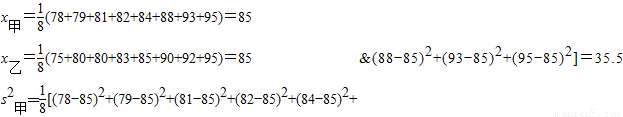 | 乙 | 92 | 95 | 80 | 75 | 83 | 80 | 90 | 85 |