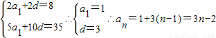 【答案】分析:利用等差數(shù)列的通項(xiàng)公式和前n項(xiàng)和公式,建立方程組,先求出首項(xiàng)和公差,然后再求通項(xiàng)an