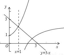 【答案】分析:由題意可得,直線y=3-x和函數(shù)y=2x交點(diǎn)的橫坐標(biāo)為x1,直線y=3-x和函數(shù)y=log2(x-1)的交點(diǎn)的橫坐標(biāo)為x2,結(jié)合圖象可得x1=1,2<x2<3,從而得到 3<x1+x2<4,由此求得[x1+x2]的值.