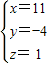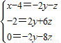 (x-4,-2,0)=y(-2,2,-2)+z(-1,6,-8),得方程組: