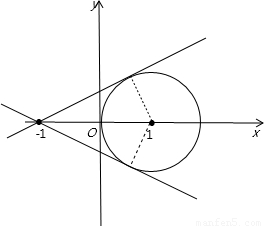 當(dāng)直線y-mx-m=0與圓相切時,圓心到直線的距離d==r=1,