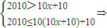 【答案】分析:由框圖知,此程序輸出的是循環(huán)次數(shù),K值等于次循環(huán)數(shù),循環(huán)退出的條件是x≥2010,由此關(guān)系得出不等式,求出x的取值范圍,由題意得