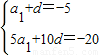 依題意,有 a2=a1+d=-5,S5=5a1+10d=-20…(2分)