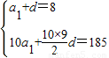 解答:解.(I)數(shù)列{an}為等差數(shù)列,a2=8,S10=185.