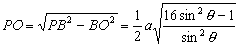 作PO⊥底面ABC,垂足為O. 由PA =PB =PC =2a,知O為△ABC的外心. ∵ AB =AC =a , ∴ O落在底面ABC的高AD上. 設(shè)∠ABC =θ,連結(jié)BO, 則BO為△ABC外接圓的半徑. 記BO =R,由正弦定理,有