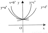 如圖,設a,b,c,d>0,且不等于1,y=ax,y=bx, y=cx,y=dx在同一坐標系中的圖象如圖,則a,b,c,d的大小順序( )