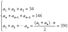 若一個(gè)等差數(shù)列前3項(xiàng)的和為34,最后3項(xiàng)的和為146,且所有項(xiàng)的和為390,則這個(gè)數(shù)列有
