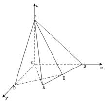 PC⊥平面ABCD,點E為AB中點。AC⊥DE,