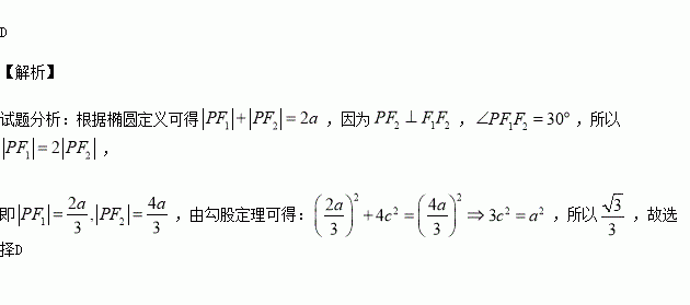 設(shè)橢圓的兩個焦點分別為F1、、F2,過F2作橢圓長軸的垂線交橢圓于點P,若△F1PF2為等腰直角三角形,則橢圓的離心率是( ).