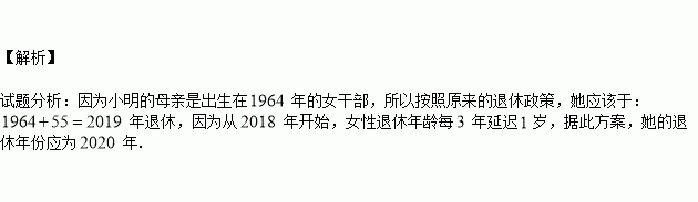 歲,小明的母親是出生于1964年女干部,據(jù)此方案,她退休的年份是 年.