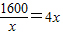 某公司一年購買某種貨物400噸,每次都購買x噸,運費為4萬元/次,一年的總存儲費用為4x萬元,要使一年的總運費與總存儲費用之和最小,則x=