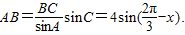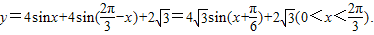 在△ABC中,角A、B、C的對邊分別為a,b,c,已知.設(shè)B=x,△ABC的周長為y.