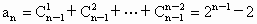 如圖所示,在楊輝三角中,從上往下共有n(nÎ N*)行,在這些數(shù)中排1的數(shù)字之和是________.