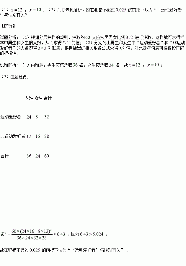 列聯(lián)表,能否在犯錯(cuò)誤的概率不超過(guò)0.025的前提下認(rèn)為“‘運(yùn)動(dòng)愛(ài)好者’ 與性別有關(guān)”?