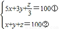 我國古代數(shù)學(xué)家張邱建編《張邱建算經(jīng)》中記有有趣的數(shù)學(xué)問題:“今有雞翁一,值錢五;雞母一,值錢三;雞雛三,值錢一凡百錢,買雞百只,問雞翁、母、雛各幾何?”你能用程序解決這個(gè)問題嗎?