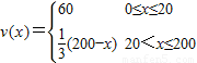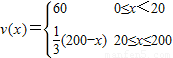 解答:解:(I) 由題意:當(dāng)0≤x≤20時(shí),v(x)=60;當(dāng)20<x≤200時(shí),設(shè)v(x)=ax+b